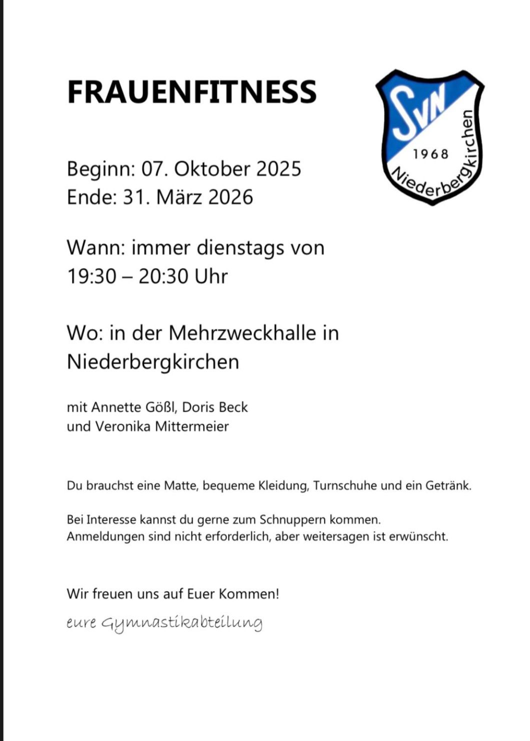 Gymnastik beim SV Niederbergkirchen